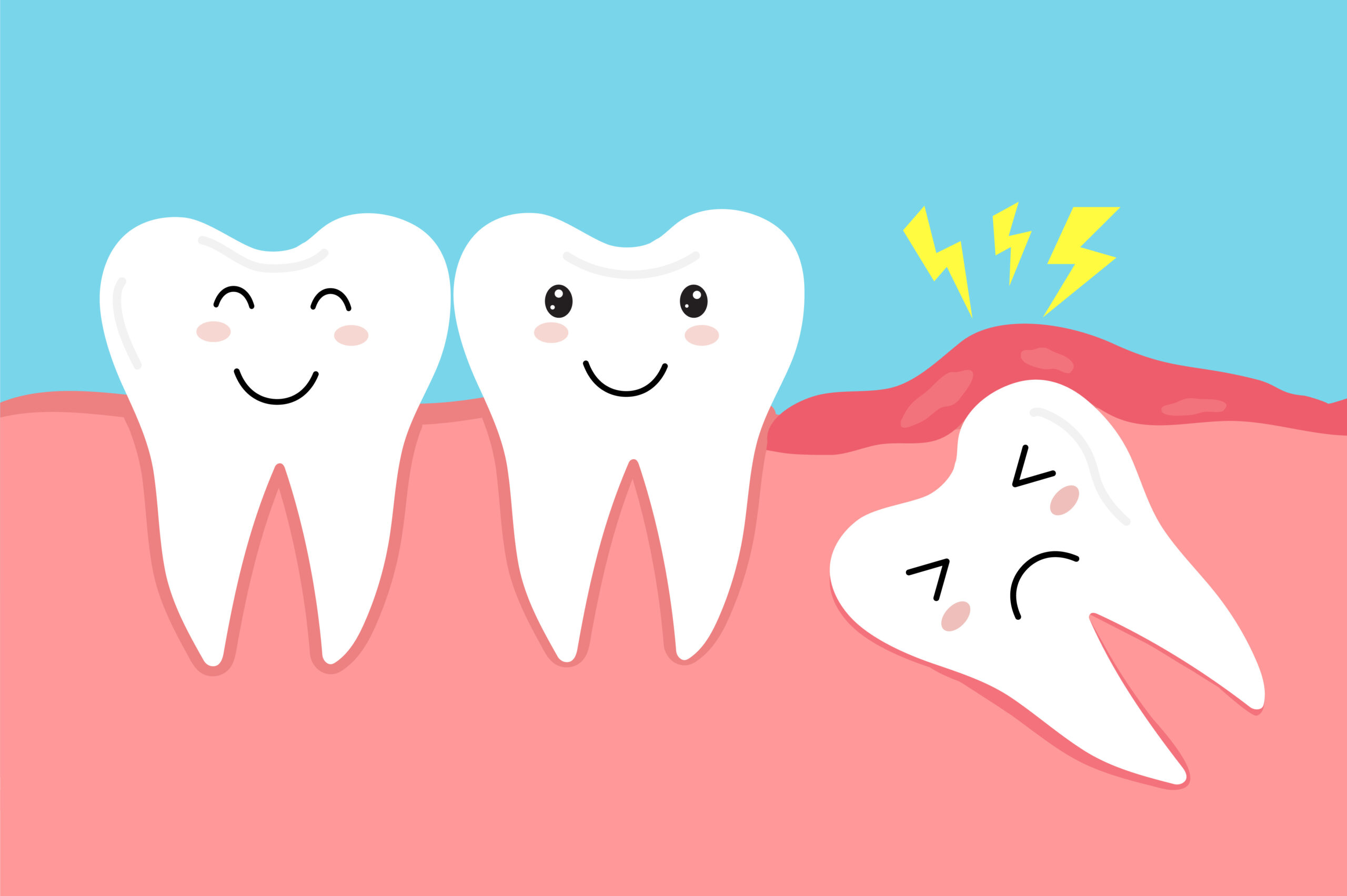 親知らずが一部だけ露出していると、歯と歯茎の間に食べ物のカスが入り込みやすくなります。これにより細菌が繁殖し、炎症や感染を引き起こします。
